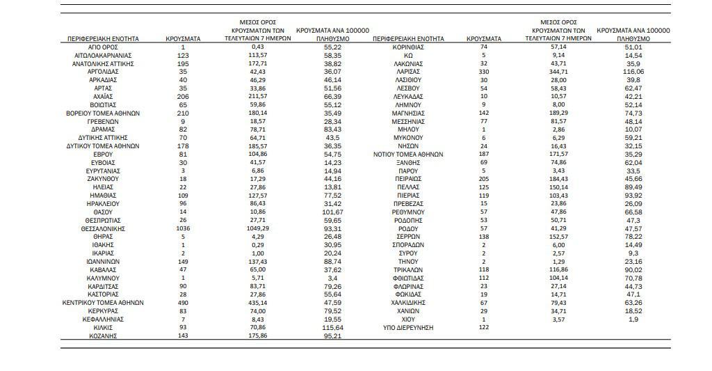 Αναλυτικότερα τα κρούσματα στις περιφερειακές ενότητες που ανήκουν στην Αττική:
