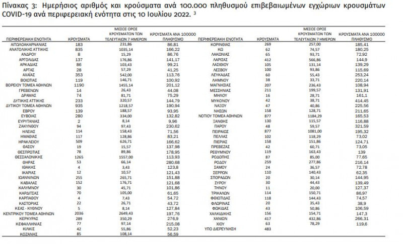 Αναλυτικότερα τα κρούσματα στις περιφερειακές ενότητες που ανήκουν στην Αττική: