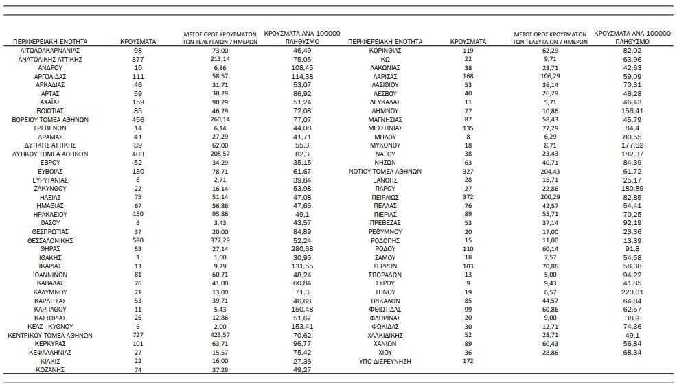 Αναλυτικότερα τα κρούσματα στις περιφερειακές ενότητες που ανήκουν στην Αττική: