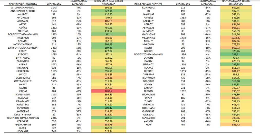Η κατανομή των κρουσμάτων στην Αττική
