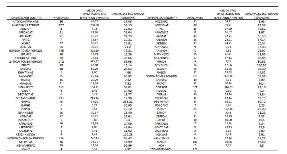 Αναλυτικότερα τα κρούσματα στις περιφερειακές ενότητες που ανήκουν στην Αττική: