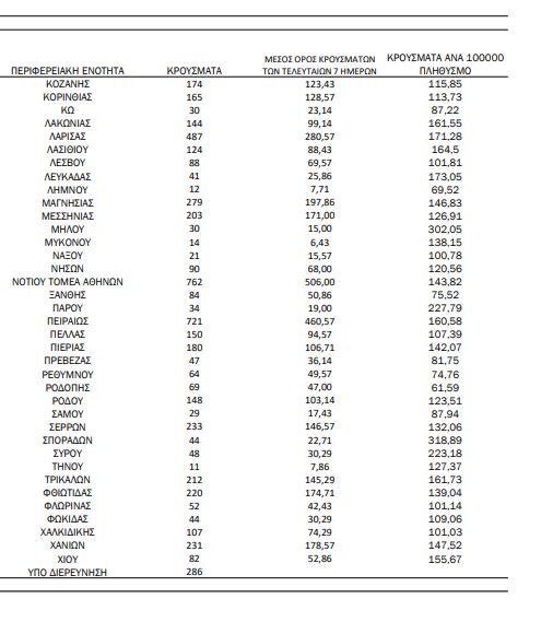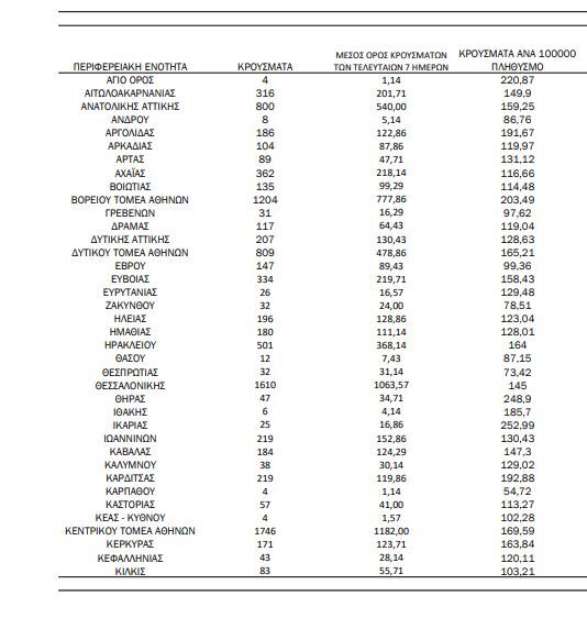 Αναλυτικότερα τα κρούσματα στις περιφερειακές ενότητες που ανήκουν στην Αττική: