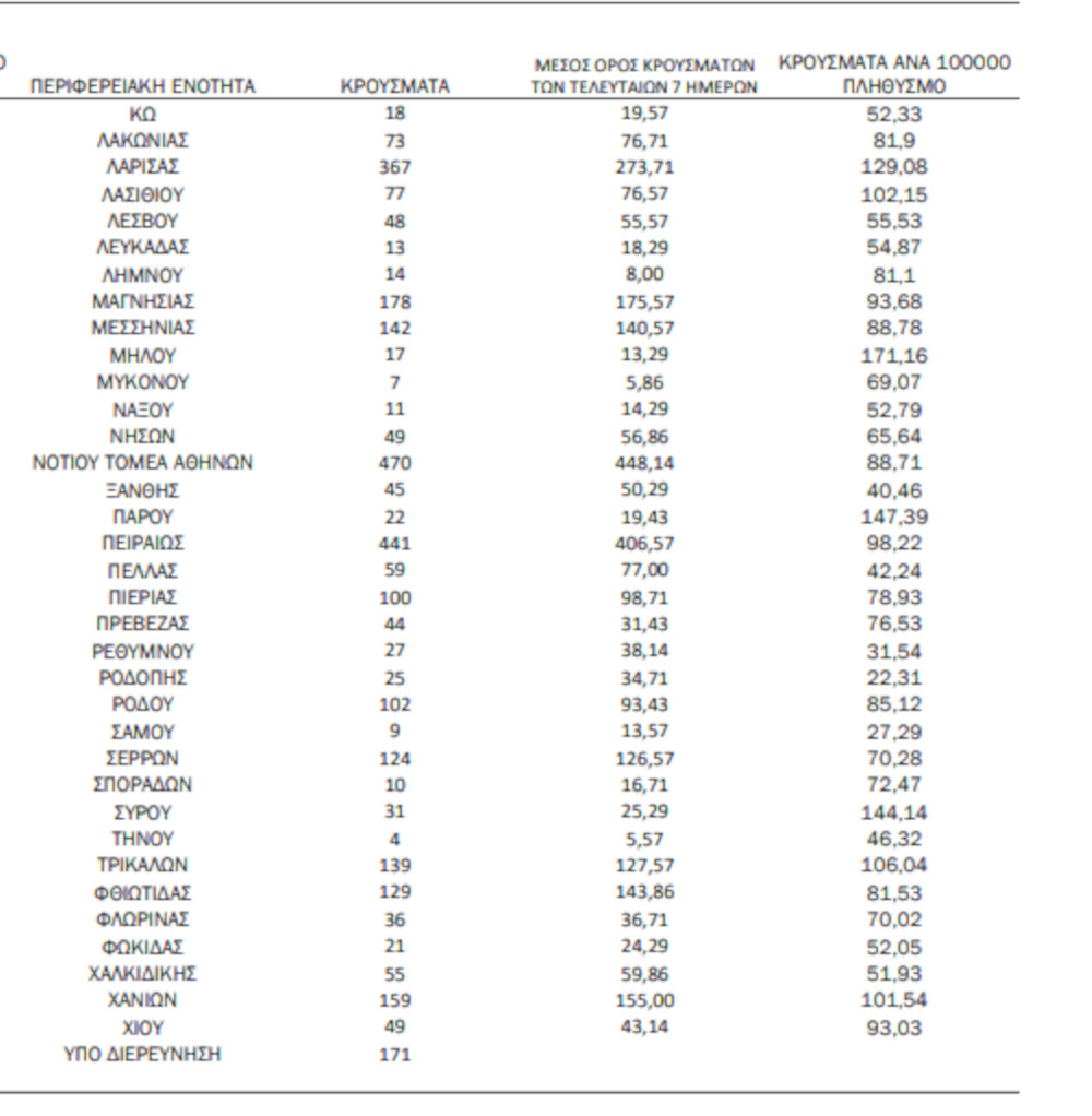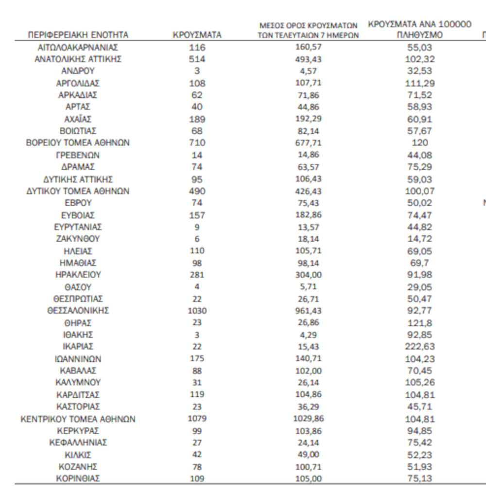 Αναλυτικότερα τα κρούσματα στις περιφερειακές ενότητες που ανήκουν στην Αττική: