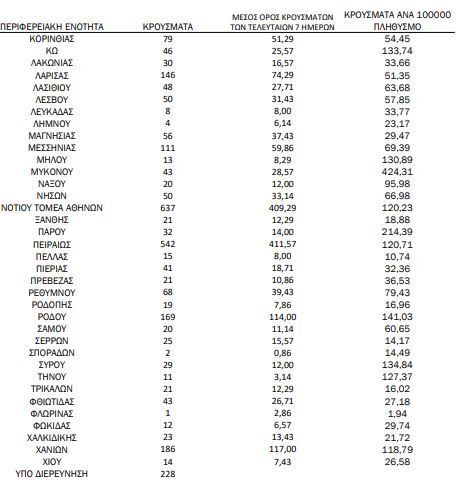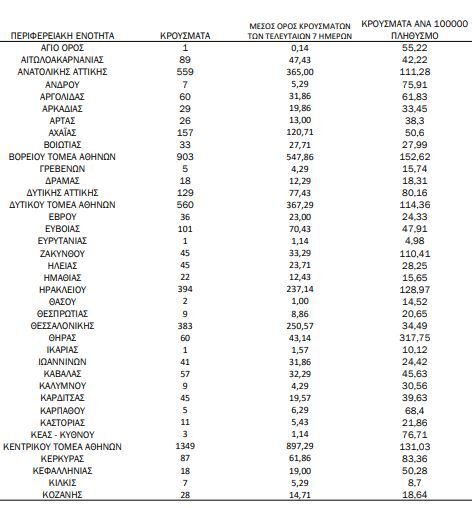 Αναλυτικότερα τα κρούσματα στις περιφερειακές ενότητες που ανήκουν στην Αττική: