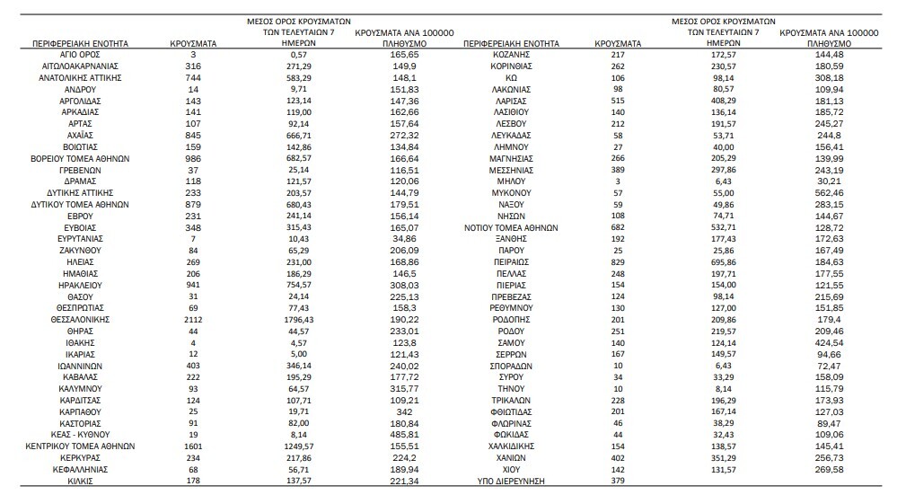 Αναλυτικότερα τα κρούσματα στις περιφερειακές ενότητες που ανήκουν στην Αττική: