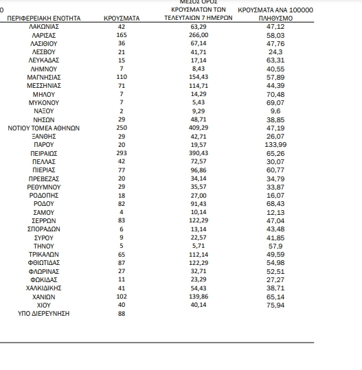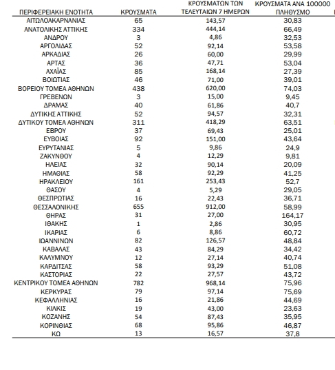 Αναλυτικότερα τα κρούσματα στις περιφερειακές ενότητες που ανήκουν στην Αττική: