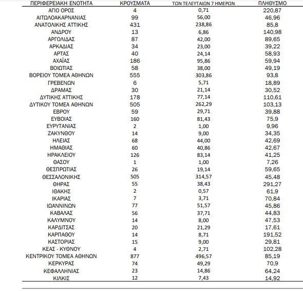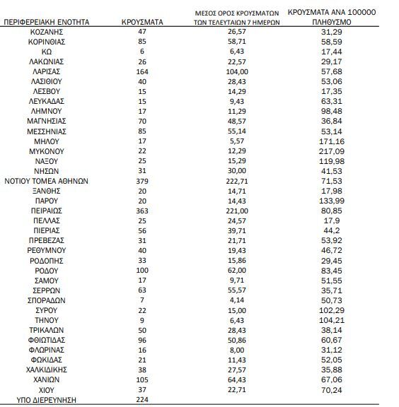 Αναλυτικότερα τα κρούσματα στις περιφερειακές ενότητες που ανήκουν στην Αττική: