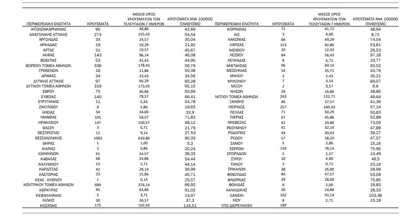 Αναλυτικότερα τα κρούσματα στις περιφερειακές ενότητες που ανήκουν στην Αττική: