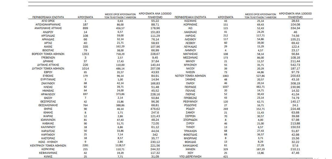 Αναλυτικότερα τα κρούσματα στις περιφερειακές ενότητες που ανήκουν στην Αττική: