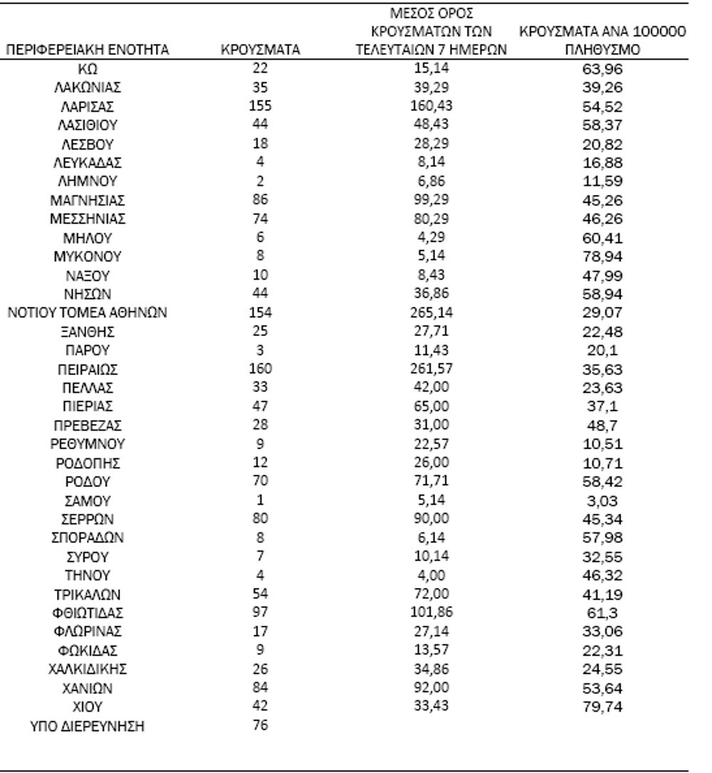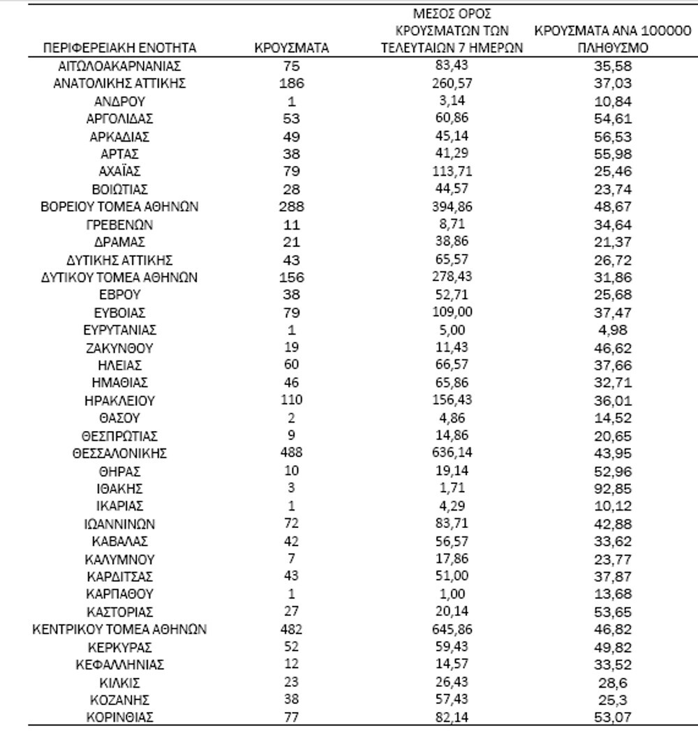 Αναλυτικότερα τα κρούσματα στις περιφερειακές ενότητες που ανήκουν στην Αττική: