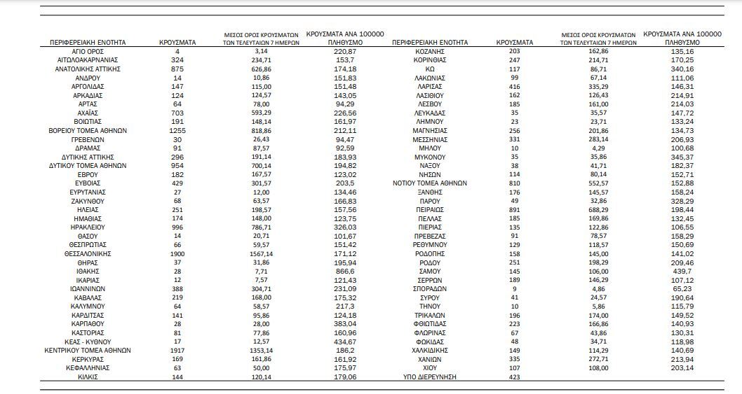 Αναλυτικότερα τα κρούσματα στις περιφερειακές ενότητες που ανήκουν στην Αττική: