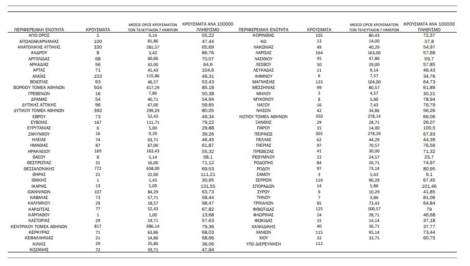 Αναλυτικότερα τα κρούσματα στις περιφερειακές ενότητες που ανήκουν στην Αττική: