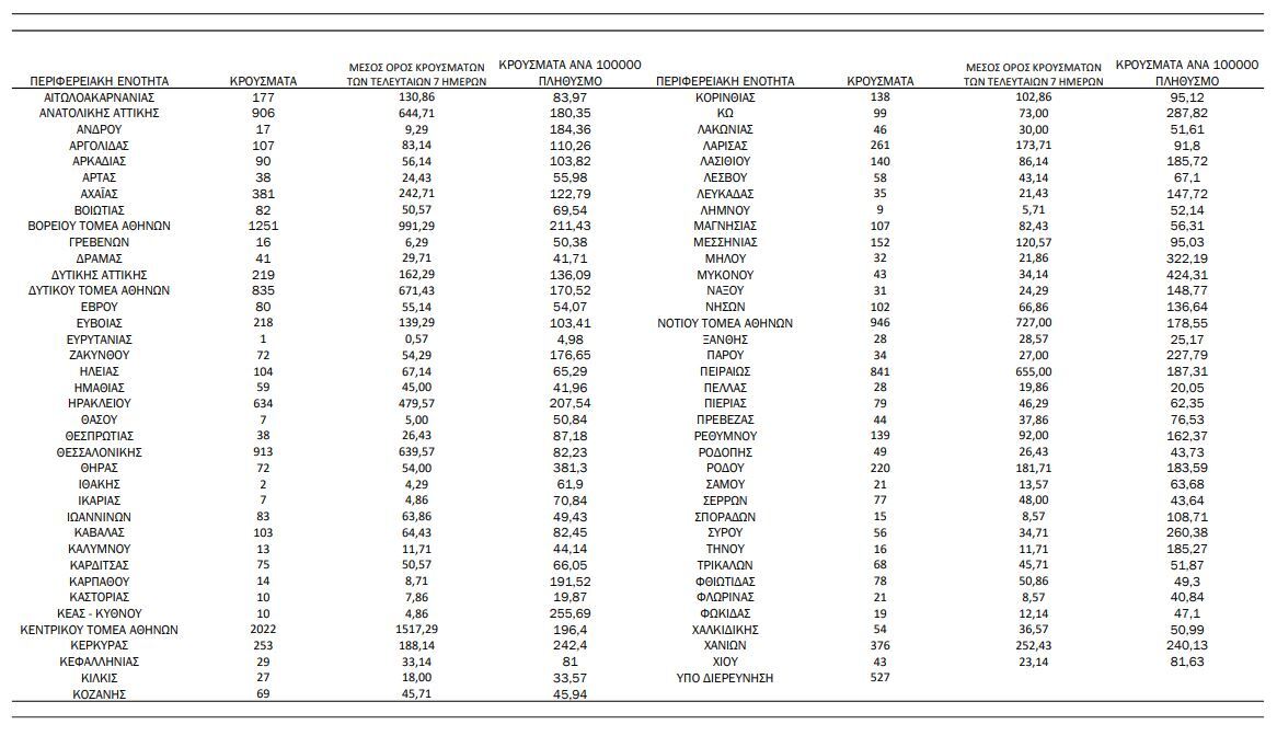 Αναλυτικότερα τα κρούσματα στις περιφερειακές ενότητες που ανήκουν στην Αττική: