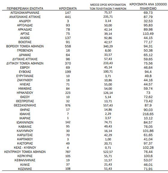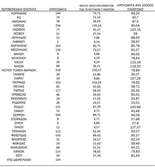 Αναλυτικότερα τα κρούσματα στις περιφερειακές ενότητες που ανήκουν στην Αττική: