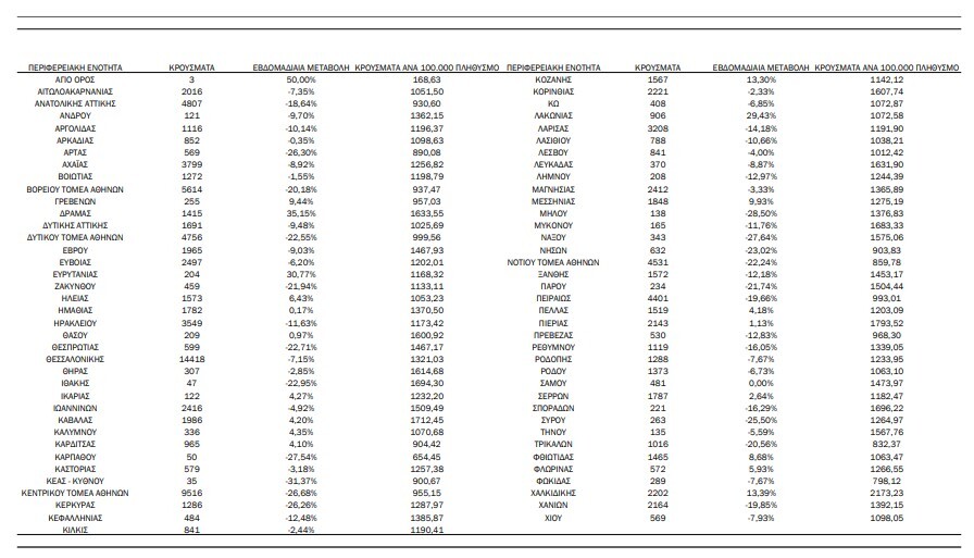Αναλυτικά η γεωγραφική κατανομή των σημερινών κρουσμάτων στην Αττική και την υπόλοιπη Ελλάδα: