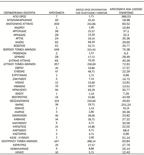 Αναλυτικότερα τα κρούσματα στις περιφερειακές ενότητες που ανήκουν στην Αττική: