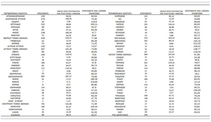 - Κεντρικός Τομέας Αθηνών: κρούσματα
