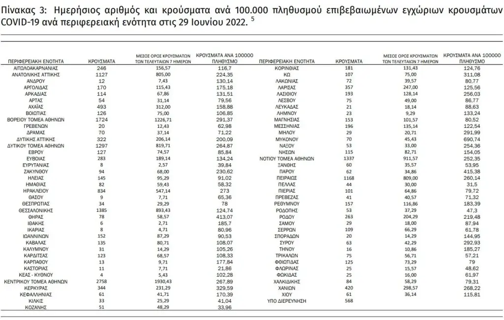 Αναλυτικά η ανακοίνωση του ΕΟΔΥ για τα κρούσματα