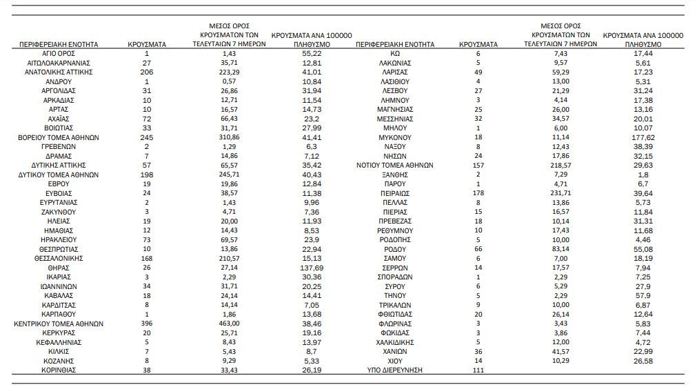 Αναλυτικότερα τα κρούσματα στις περιφερειακές ενότητες που ανήκουν στην Αττική: