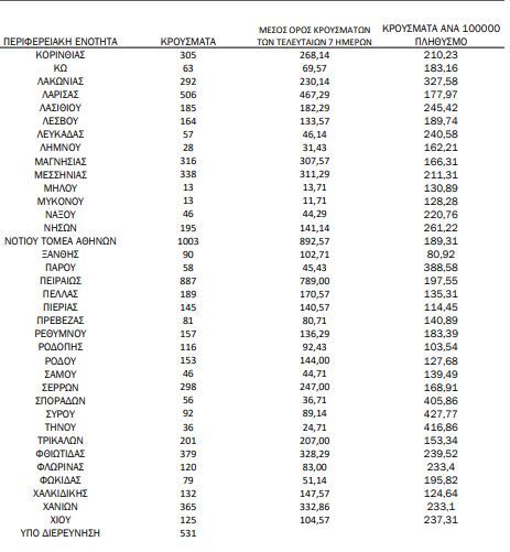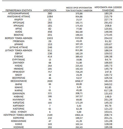 Αναλυτικά, η γεωγραφική κατανομή των σημερινών κρουσμάτων: