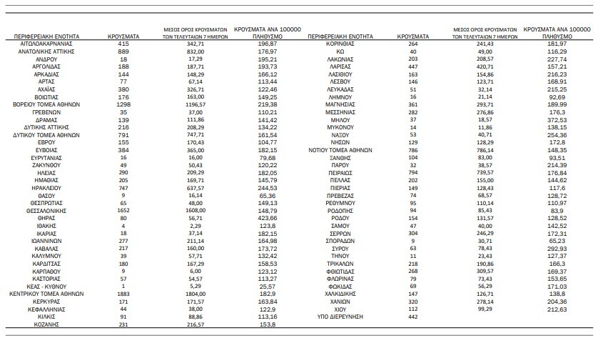 Αναλυτικότερα τα κρούσματα στις περιφερειακές ενότητες που ανήκουν στην Αττική: