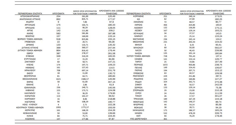 Αναλυτικότερα τα κρούσματα στις περιφερειακές ενότητες που ανήκουν στην Αττική: