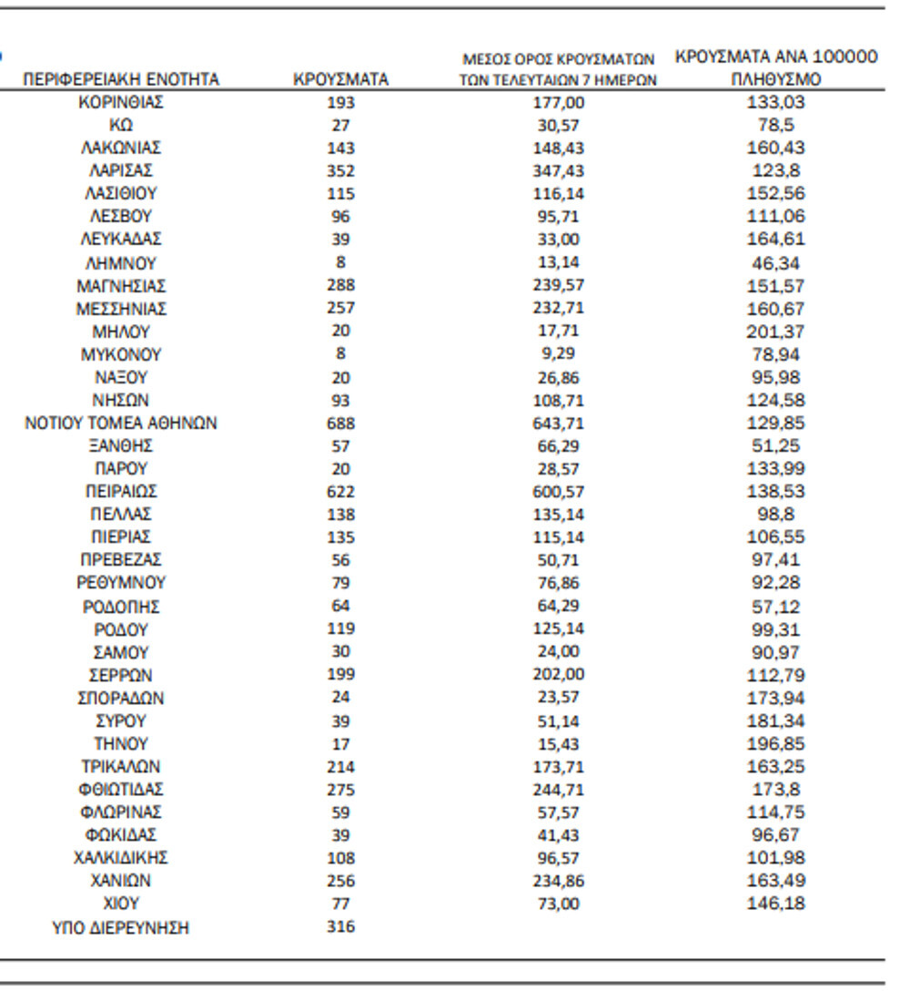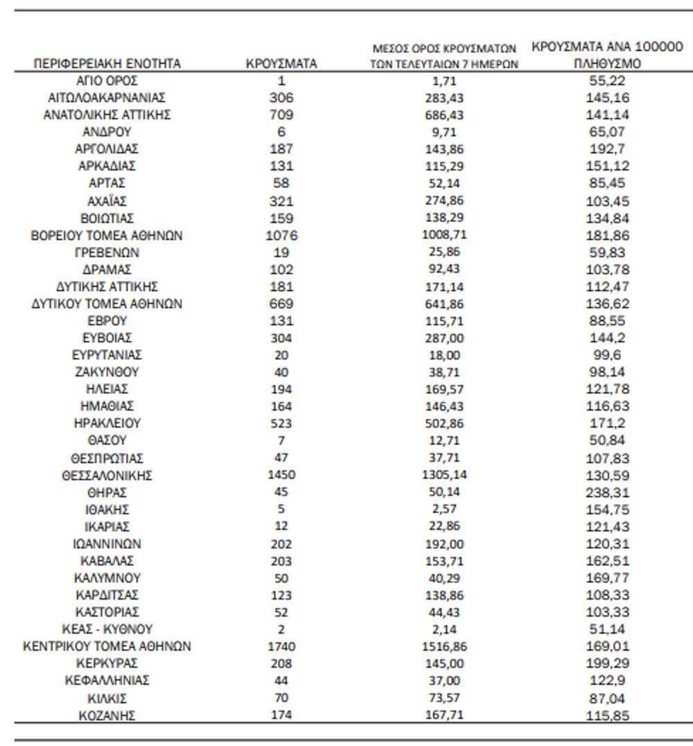 Αναλυτικότερα τα κρούσματα στις περιφερειακές ενότητες που ανήκουν στην Αττική: