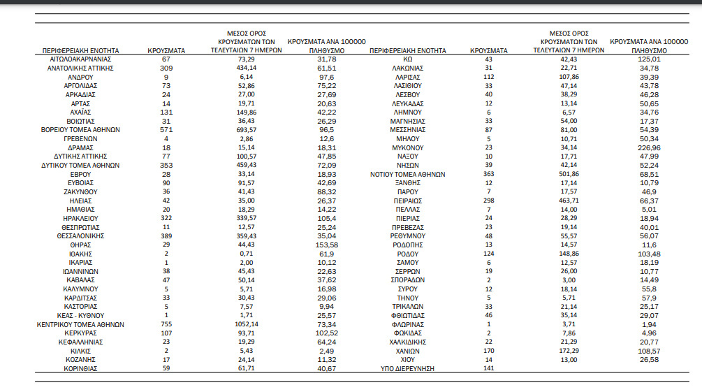 Αναλυτικότερα τα κρούσματα στις περιφερειακές ενότητες που ανήκουν στην Αττική: