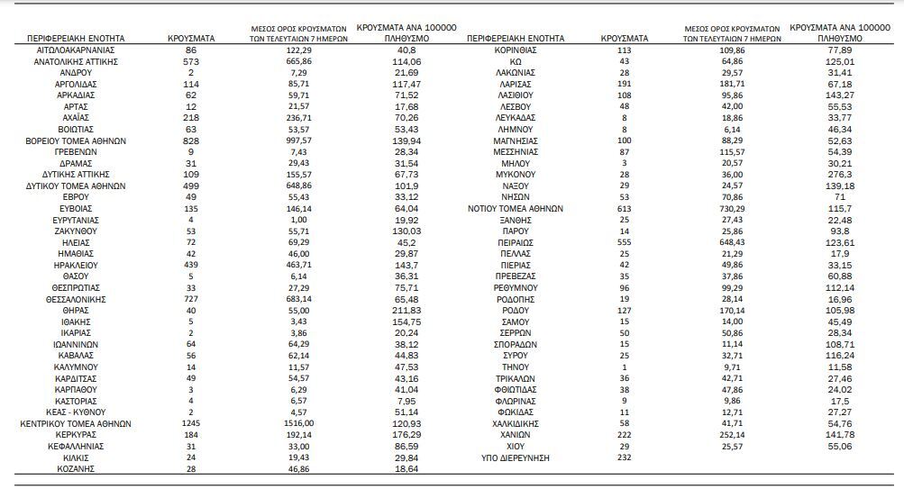 Αναλυτικότερα τα κρούσματα στις περιφερειακές ενότητες που ανήκουν στην Αττική: