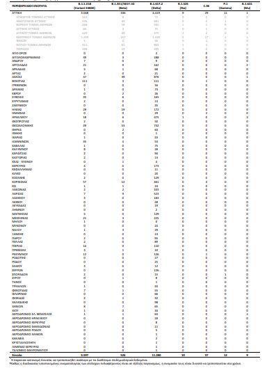 Όσον αφορά στα στελέχη ενδιαφέροντος που χρήζουν άμεσης λήψης μέτρων ελέγχου επί του παρόντος στη χώρα, η γεωγραφική κατανομή ανά Περιφερειακή Ενότητα παρουσιάζεται στον πίνακα 5.