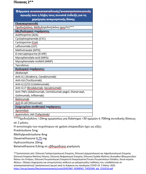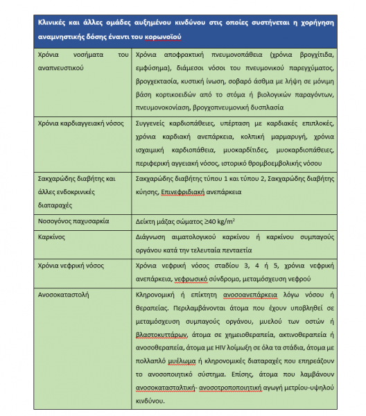 • σε διαβιούντες με άτομα σε ανοσοκαταστολή ή άλλο υποκείμενο νόσημα (βλ. Πίνακες 1 και 2)