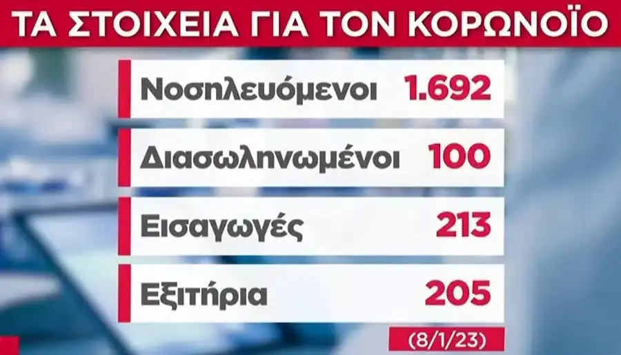 Μέχρι τις 8/1, τα στοιχεία για τον κορονοϊό στην Ελλάδα έχουν ως εξής: