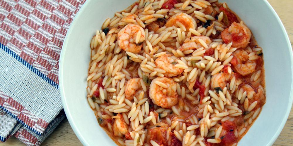 Μόλις εξατμιστεί βάζετε τα καρυκεύματα, τις ντομάτες, τη ζάχαρη και προσθέτετε ζεστό νερό μέχρι να σκεπαστεί ελαφρώς το φαγητό. Σιγοβράζετε και ανακατεύετε συχνά. Όταν δέσει η σάλτσα και έχει μαλακώσει το κριθαράκι, σβήνετε.