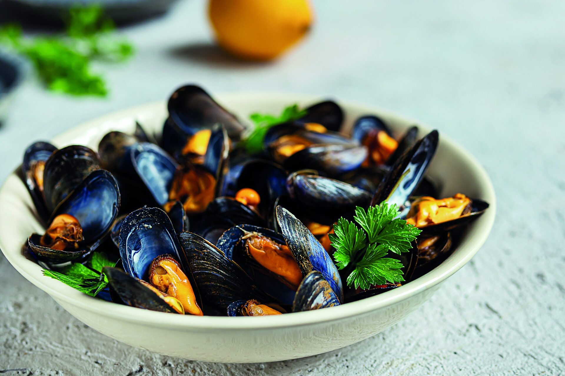Βάζουμε στην κατσαρόλα ωμό το κρεμμύδι μαζί με τα 200 ml κρασί και το μπουκέ γκαρνί για 5 λεπτά. Ρίχνουμε μέσα τα μύδια, σκεπάζετε και αφήνουμε για 2 λεπτά. Στη συνέχεια μεταφέρουμε τα μύδια σε ένα σκεύος και σκεπάζουμε την κατσαρόλα με το ζουμί που έχουν βγάλει τα μύδια και αφήνουμε να βράσουν για 2 λεπτά. Επειτα σουρώνουμε και προσθέτουμε το βούτυρο για να δέσει. Σερβίρουμε τα μύδια σε μια πιατέλα και τα περιχύνουμε με το ζουμί τους.