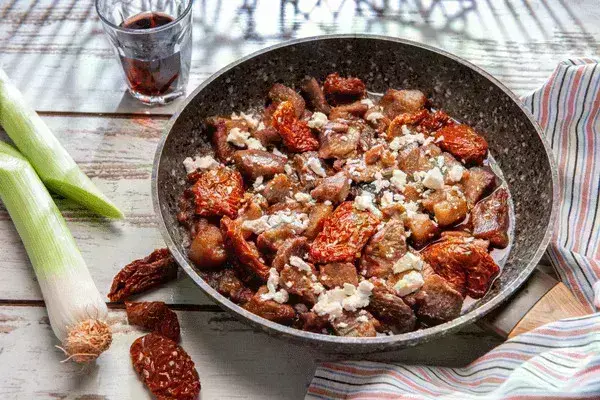 Υλικά – Χοιρινή τηγανιά με φέτα