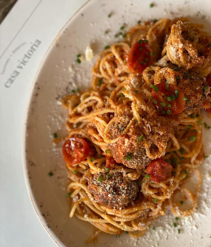 Το «Casa Victoria» στρώνει τραπέζι για γεύμα και δείπνο, με τις επιλογές να σας βάζουν δύσκολα. Οι προτάσεις των σεφ είναι πολλές και όλες φαντάζουν -κι αν τις δοκιμάσετε θα δείτε ότι είναι- θεϊκές. Εμείς ξεχωρίσαμε από τα ορεκτικά το κροστίνι με γκοργκοντζόλα, τη Focaccia με ντοματίνια, μοτσαρέλα και πέστο, αλλά και τα Arancini, γεμιστά με καπνιστή πανσέτα και λιαστή ντομάτα, σερβιρισμένα με σάλτσα ντομάτας San Marzano και κρέμα ricotta, που θα σας μεταφέρουν νοητά σε κάποια τρατορία της Ιταλίας.