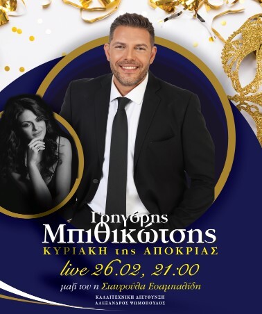 Ο Γρηγόρης Μπιθικώτσης σε μία και μοναδική εμφάνιση, μας περιμένει στο ΚΡΙΘΑΜΟΣ την τελευταία Κυριακή της Αποκριάς το βράδυ, να διασκεδάσουμε και να τραγουδήσουμε μαζί του αγαπημένες λαϊκές επιτυχίες που όλοι αγαπήσαμε.