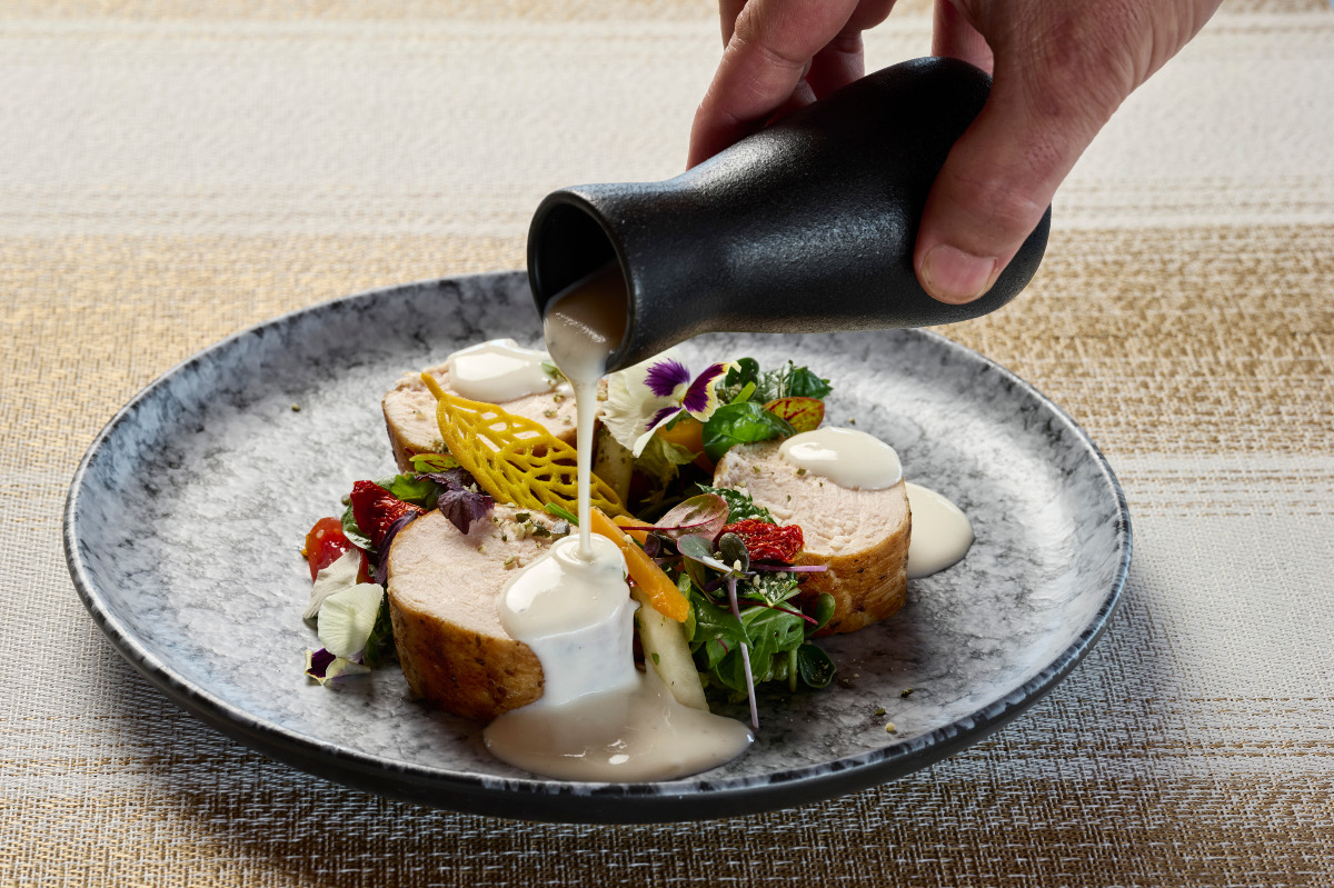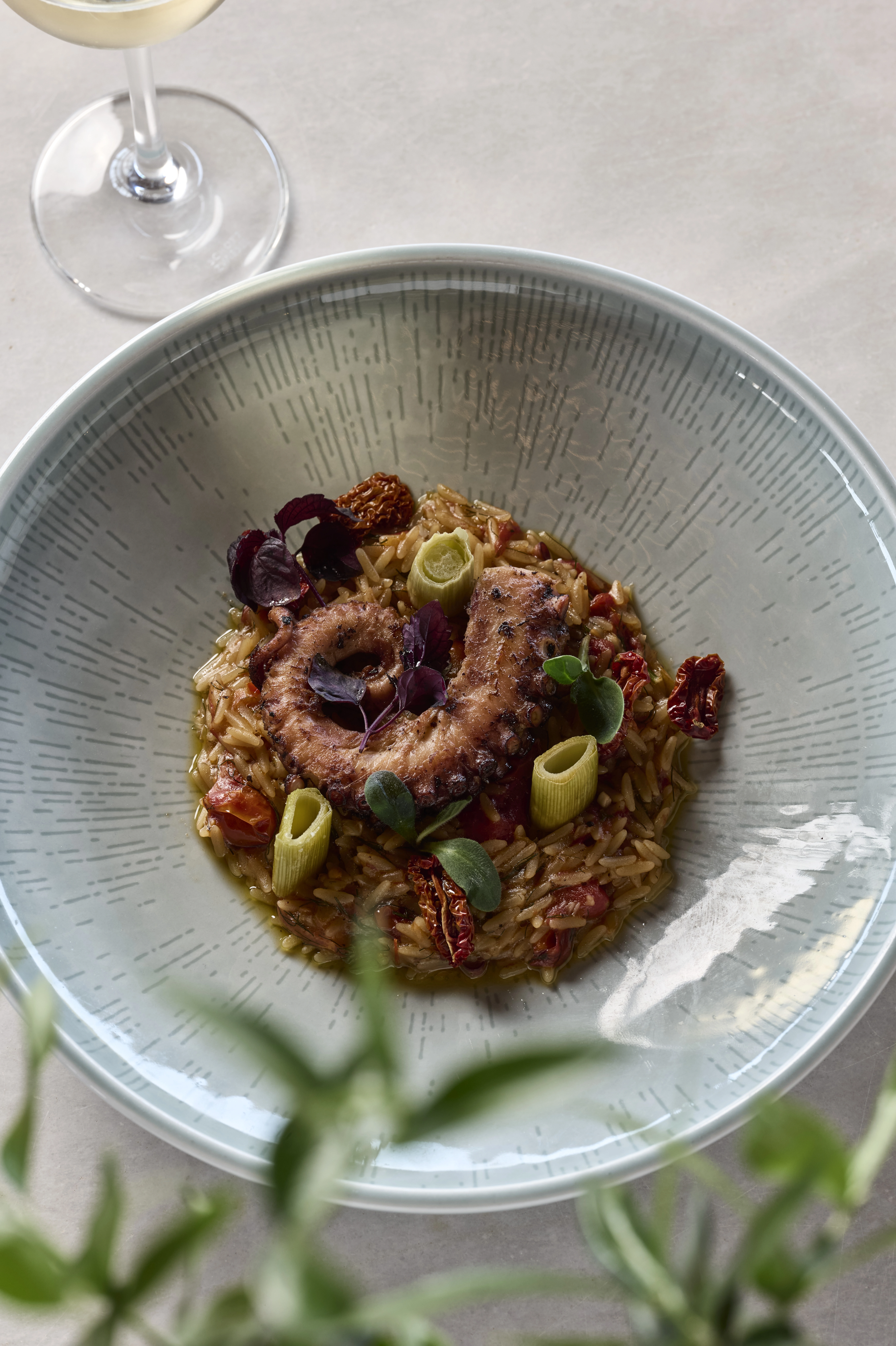 Όλα τα πιάτα του set menu, με την υπογραφή του σεφ Μανώλη Ματθαιάκη, είναι φτιαγμένα με τοπικά προϊόντα, όπως το γαλένι (άλειμμα τυριού) και το μαγγίρι (παραδοσιακό ζυμαρικό), τα οποία παράγονται με βάση τις αρχές της βιωσιμότητας. Πιάτα όπως το χταπόδι ή το τσιγαριαστό αρνί αποτελούν τον πυρήνα της κρητικής γαστρονομίας, φέρνοντας στον νου γεύσεις και αρώματα από την κουζίνα της γιαγιάς.