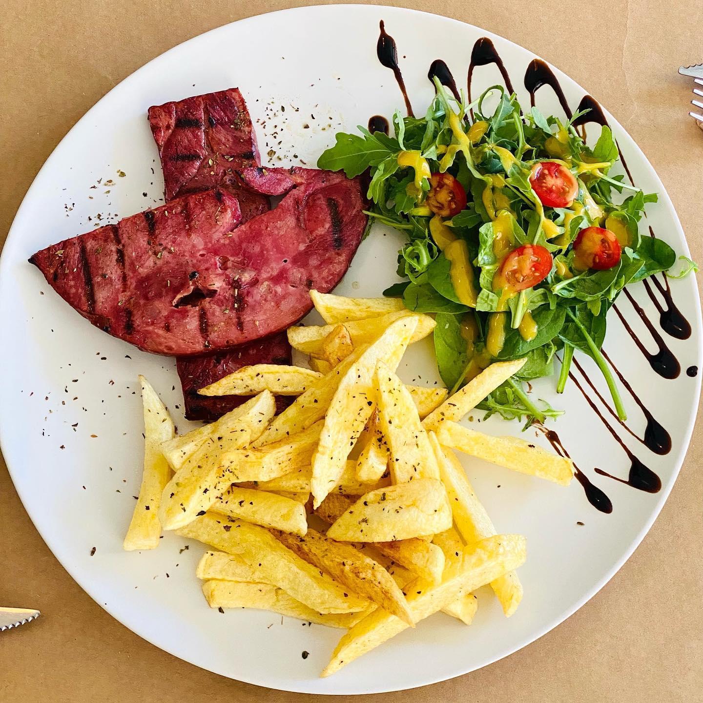 Στην κουζίνα θα βρείτε φρέσκο μαγειρεμένο ζεστό φαγητό με υψηλής ποιότητας αγνά υλικά. Μερικά από τα πιάτα που πρέπει οπωσδήποτε να δοκιμάσετε είναι τα μαγειρευτά, τα οποία αλλάζουν καθημερινά, όπως παστίτσιο, κανελόνια, κατσικάκι με πατατούλες στον φούρνο, μοσχαράκι λεμονάτο με πουρέ, σουτζουκάκια με σάλτσα φρέσκιας ντομάτας, τσιπούρα σχάρας με βραστά λαχανικά και πολλά ακόμα εξαιρετικά πιάτα.