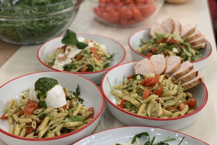 Ελαφριά σαλάτα με κοτόπουλο, μοτσαρέλα και πέστο