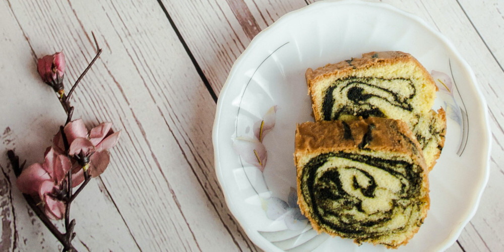 Σε μια βουτυρωμένη και αλευρωμένη ή πασπαλισμένη με ζάχαρη στρογγυλή φόρμα κέικ βάζουμε τα 3/4 από το μίγμα.