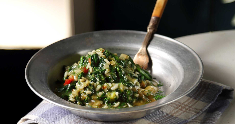 Προσθέτουμε το υπόλοιπο ελαιόλαδο στο τέλος του βρασμού και πασπαλίζουμε με τον ψιλοκομμένο άνηθο. Στύβουμε το λεμόνι και ανακατεύουμε. Σκεπάζουμε την κατσαρόλα με πετσέτα και αφήνουμε να σταθεί για 5-10 λεπτά να τραβήξει τα υγρά του.