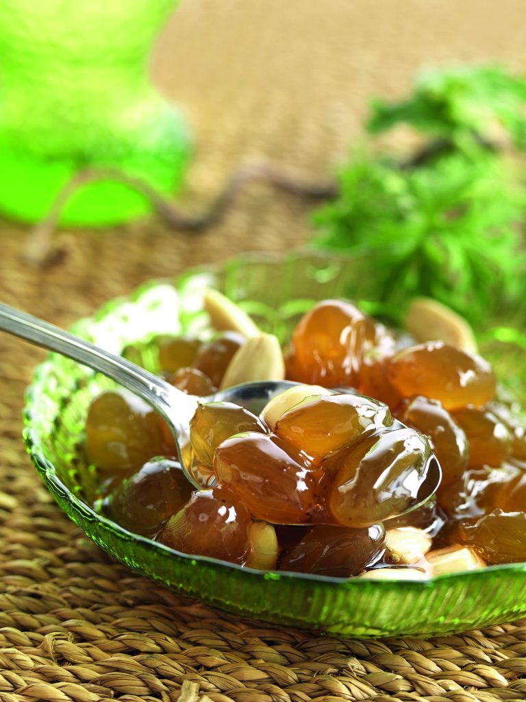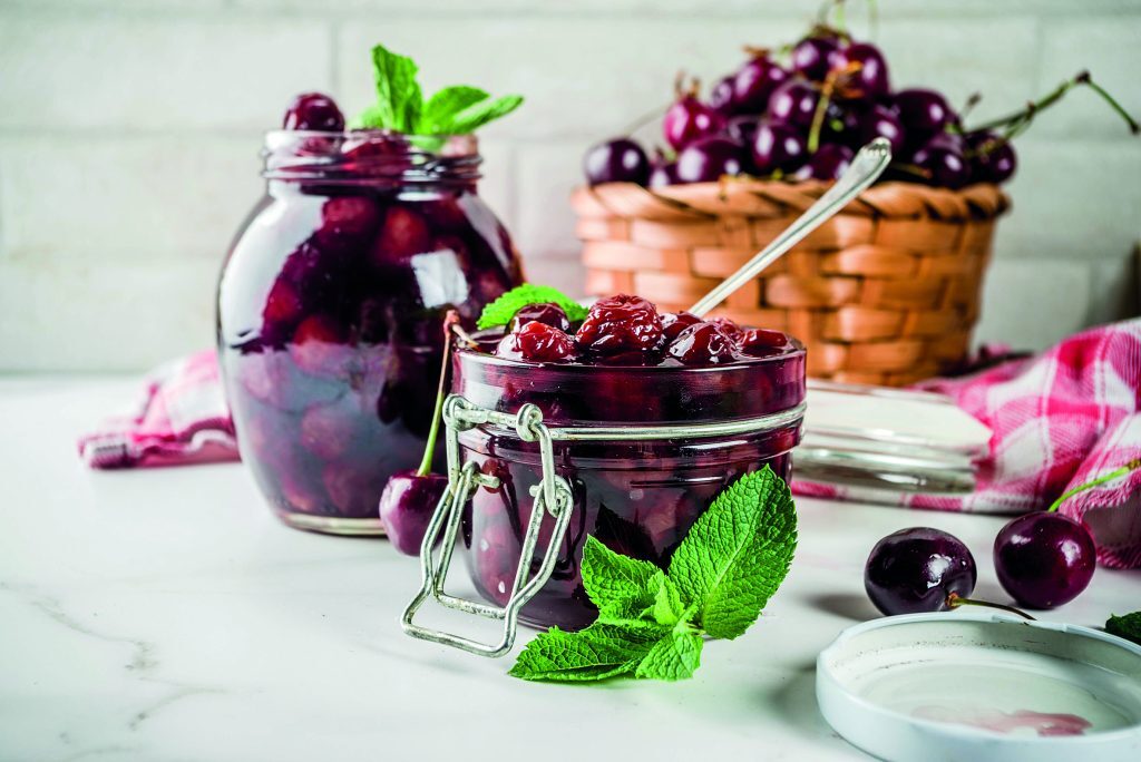 Την επόμενη μέρα βγάζουμε από το ψυγείο και το βάζουμε σε μέτρια φωτιά και βράζουμε για 6-7 λεπτά (από την ώρα που θα πάρει βράση). Ξαφρίζουμε με τη βοήθεια μιας τρυπητής κουτάλας. Βγάζουμε από τη φωτιά και αφήνουμε εκτός ψυγείου για 1 μέρα μέχρι να κρυώσει καλά (ή όλο το βράδυ). Την επόμενη μέρα βράζουμε σε μέτρια φωτιά (δεν θέλουμε να κοχλάζει) για 40-45 λεπτά. Οπως είναι ζεστό γεμίζουμε τα αποστειρωμένα βάζα, τα γυρίζουμε ανάποδα και τα αφήνουμε έτσι μέχρι να κρυώσουν.