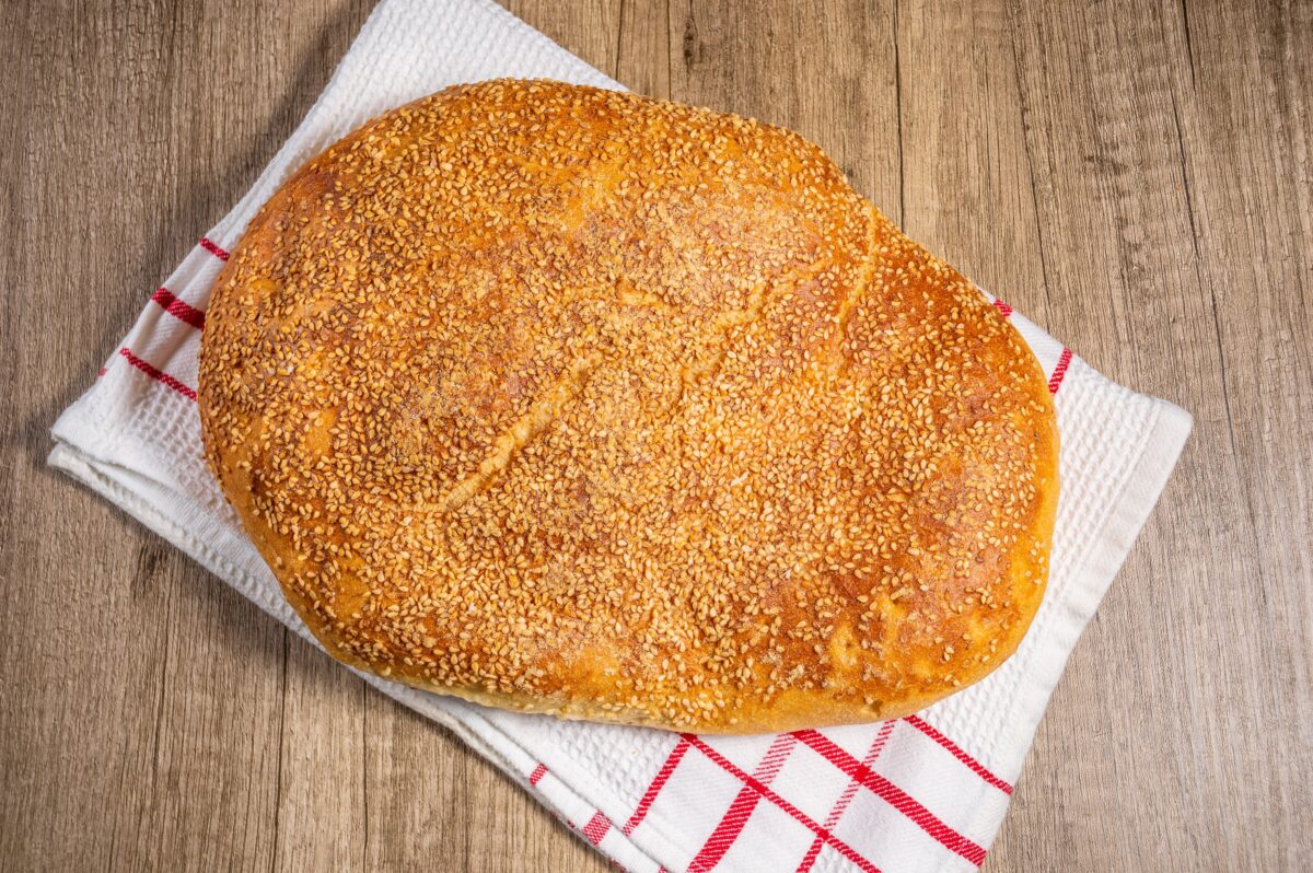 Σε ένα μπολάκι ανακατεύετε 150 ml νερό με τη μαγιά και ένα κουταλάκι του γλυκού από τη ζάχαρη, και αφήνετε για ένα τέταρτο να φουσκώσει. Κοσκινίζετε τα αλεύρια σε ένα μπολ, δημιουργείτε μια λακκουβίτσα και προσθέτετε το ελαιόλαδο, το αλάτι, την υπόλοιπη ζάχαρη, τα μπαχαρικά. Ρίχνετε τη μαγιά που έχει φουσκώσει. Σε 200 ml χλιαρό νερό διαλύετε το ταχίνι και προσθέτετε σιγά σιγά στο μίγμα. Ζυμώνετε πολύ καλά μέχρι να έχετε μια μαλακή ζύμη. Σκεπάζετε με μια πετσέτα και αφήνετε μέχρι να διπλασιαστεί. Όταν το ζυμάρι είναι έτοιμο, χωρίζετε στα δύο. Σε μια λαδόκολλα πασπαλίζετε με λίγο αλεύρι και ανοίγετε τη ζύμη με τη βοήθεια ενός πλάστη στην κλασική μορφή της λαγάνας. Μεταφέρετε τη λαδόκολλα σε ένα ταψί. Αφήνετε ξανά για περίπου μισή ώρα να ξαναφουσκώσει. Διαλύετε τη ζάχαρη στο ζεστό νερό και αλείφετε τη λαγάνα. Πιέζετε με τα δάχτυλα όλη την επιφάνεια της λαγάνας, πασπαλίζετε με τα δύο είδη σουσάμι και ραντίζετε με λίγο ελαιόλαδο. Ψήνετε σε προθερμασμένο φούρνο στους 200 βαθμούς αέρα για ένα τέταρτο.