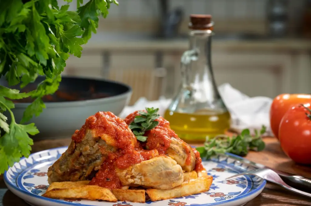 Μπακαλιάρος τηγανητός με σάλτσα ντομάτας