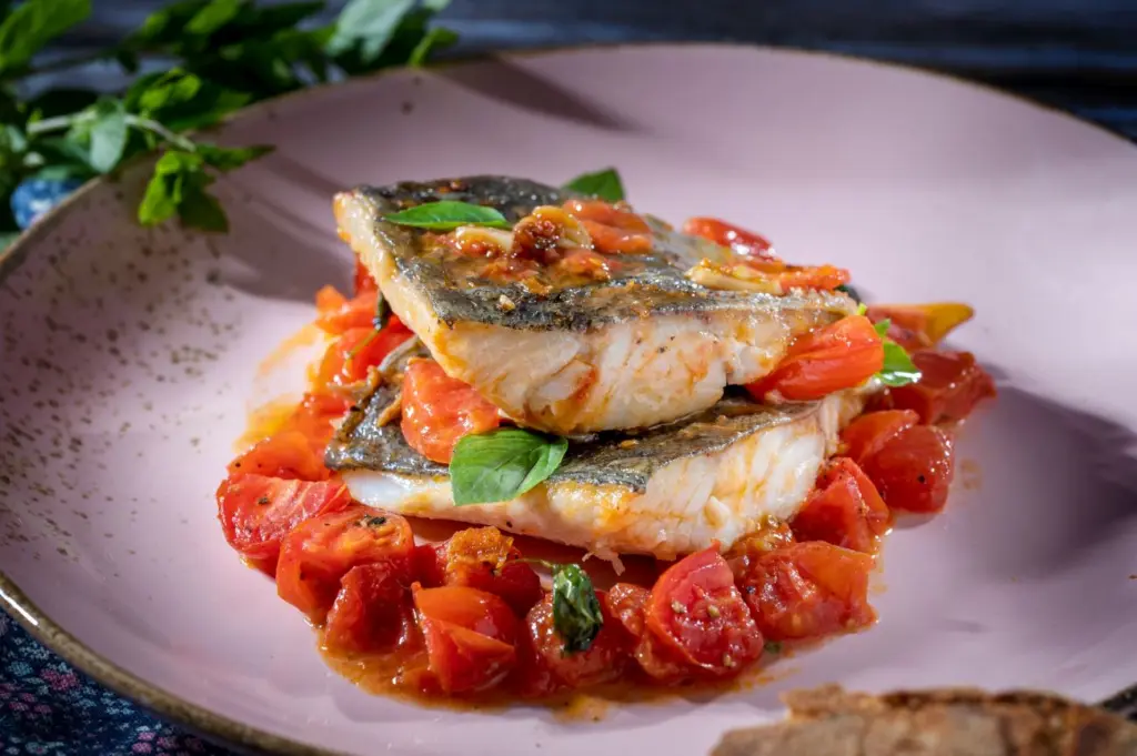 Μπακαλιάρος με ντοματίνια και βασιλικό