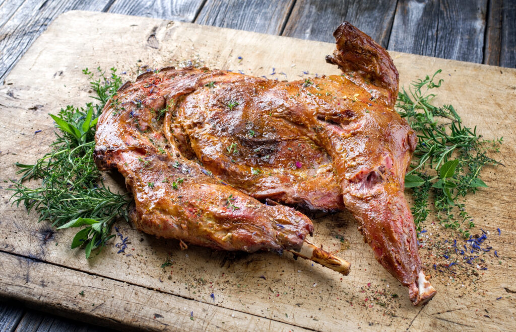 - Οταν το αρνί είναι έτοιμο μαγειρεμένο, ο εκτεταμένος αέρας θα διαφύγει σε όλη την τρυφερή σάρκα κάνοντας έναν «ήχο». Αν σας αρέσει το δέρμα τραγανό, χαμηλώστε το αρνί στα κάρβουνα και ψήστε για άλλα 30 λεπτά ή μέχρι να ροδίσουν.