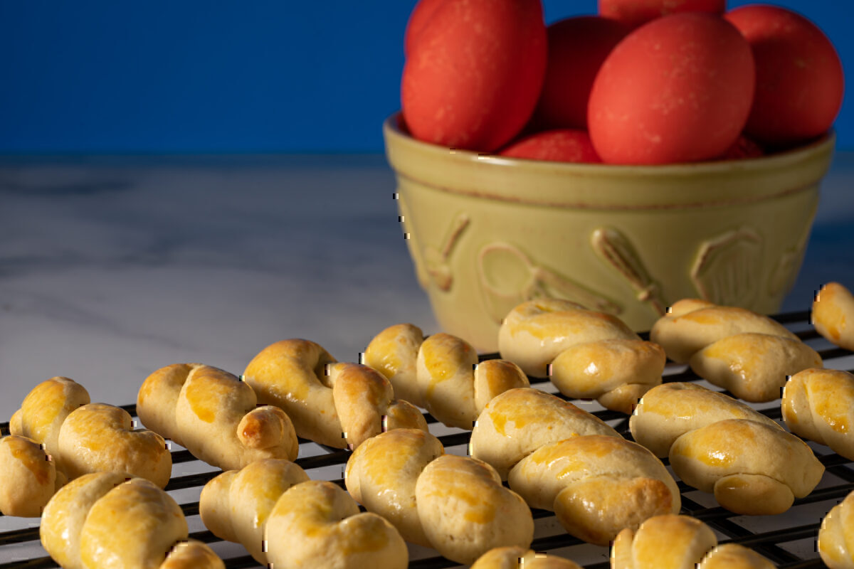 Για να γίνουν τραγανά τα πασχαλινά κουλουράκια όλα τα υλικά πρέπει να είναι σε θερμοκρασία δωματίου και το βούτυρο μαλακό.