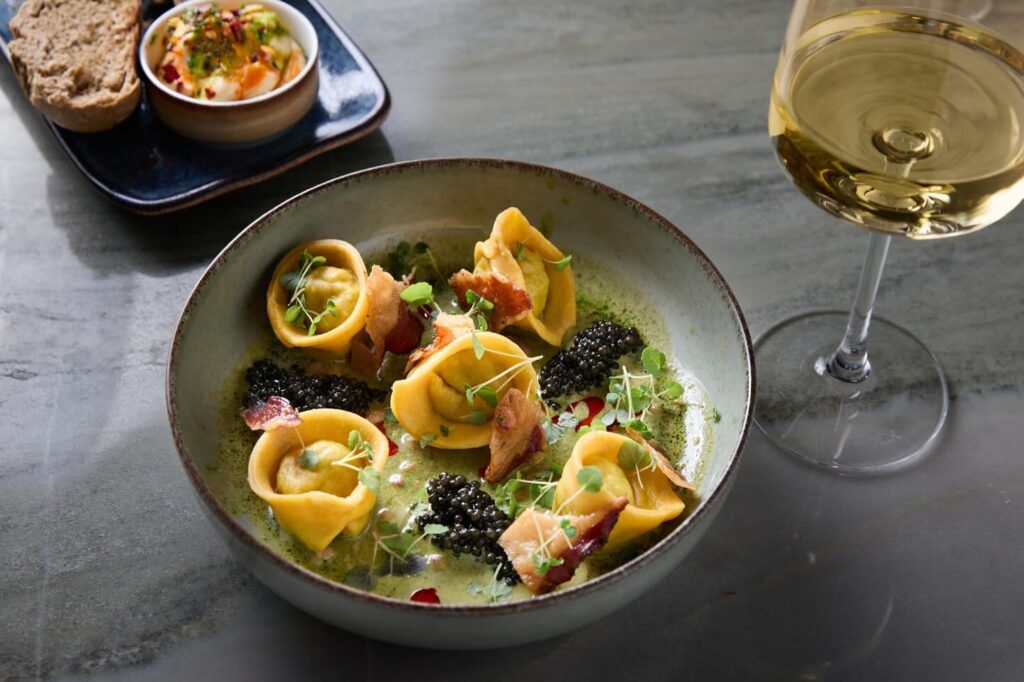 Must επιλογή τα τορτελίνια με γαρίδα, σπανάκι, κρέμα καρύδας και χαβιάρι.