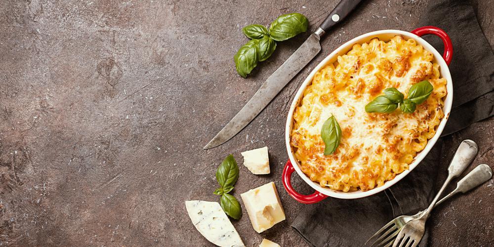 Προθερμαίνετε τον φούρνο στους 180°C. Μαγειρεύετε τα μακαρόνια σε βραστό αλατισμένο νερό ώσπου να γίνουν al dente, να κάθονται δηλαδή στο δόντι. Στραγγίζετε. Βάζετε λίγο βούτυρο στη κατσαρόλα που έβρασαν και μεταφέρετε εκεί τα μακαρόνια. Ανακατεύετε για να μην κολλήσουν και τα αφήνετε εκεί.